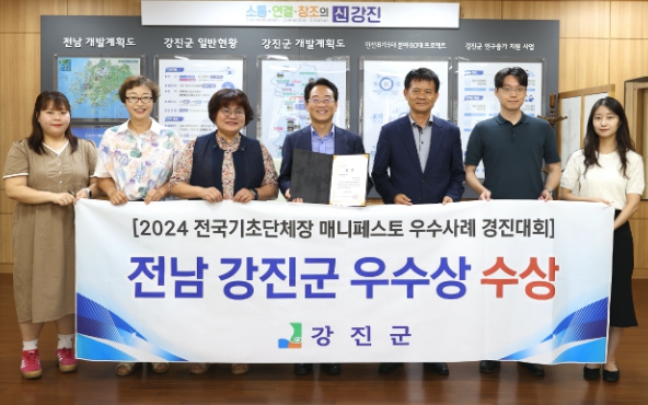 [뉴스서울] 강진군은 지난 7월 31일 사)한국매니페스토실천본부와 경남연구원이 공동 주최한 ‘2024 전국 기초단체장 매니페스토 우수사례 경진대회’에서 ‘강진 푸소’로 우수상을 수상했다고 밝혔다.
