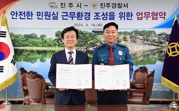 [뉴스서울] 진주시와 진주경찰서는 지난 16일 ‘진주시와 읍·면·동 민원실의 안전한 근무환경 조성을 위한 업무협약’을 체결했다.