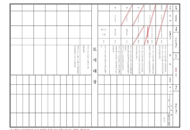 ▲ 한글 변환 토지대장 예시 |