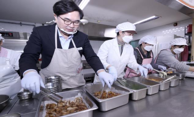 ▲ 박일하 동작구청장이 관내 보호아동시설을 방문하여 급식봉사활동을 하고 있다. |