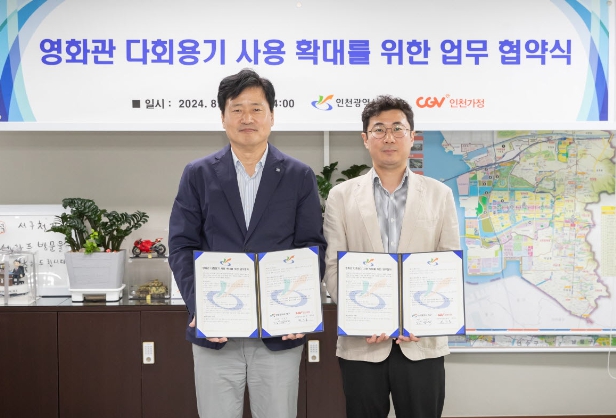 오는 9월부터 서구는 CGV인천가정에 다회용 컵을 제공하고, 영화관은 관람객에게 다회용 컵 사용 안내 및 홍보를 하여 다회용기를 사용하는 친환경 소비문화 확산을 위해 함께 노력하기로 했다.