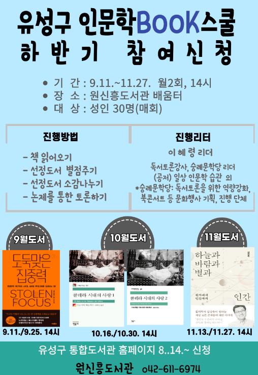 ▲ 유성구 원신흥도서관, 하반기 『인문학 BOOK 스쿨』 운영 |