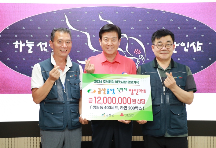 지난 28일에는 추석 명절을 맞아 금산군청에서 1200만 원 상당의 생필품 400세트, 라면 200박스를 전달했다.