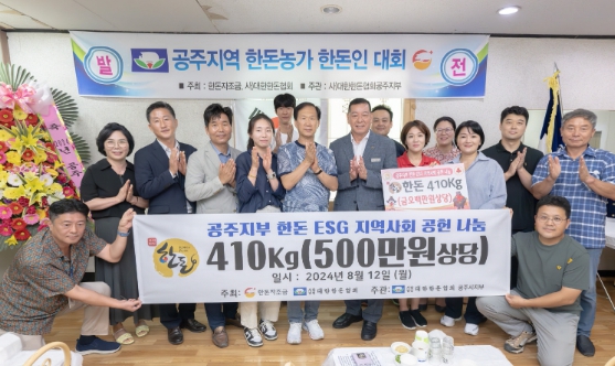 이 자리에서 송일환 대한한돈협회 공주시지부 지부장은 한돈 ESG 지역사회 공헌 나눔의 일환으로 한돈 410kg(500만원 상당)을 최원철 시장에게 전달했다.