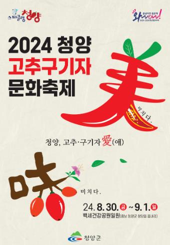 [뉴스서울] 청양 관광객 500만 시대를 여는 중추적인 역할을 할 ‘2024 청양고추구기자 문화축제’가 오는 30일부터 9월 1일까지 3일간 청양읍 백세건강공원 일원에서 개최된다.