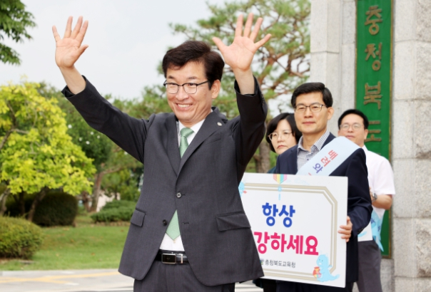 [뉴스서울] 윤건영 충청북도교육감은 2일 아침, 교육청 정문에서 출근하는 직원들을 대상으로 상호 존중과 청렴 홍보 캠페인을 진행하며 아침맞이 행사를 진행했다.