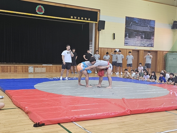 이번 행사는 씨름의 전통을 이어가고, 학교 체육 활성화를 도모하기 위해 마련된 자리로, 씨름단 선수 10명이 전원 참여해 학생들에게 씨름의 기본 이론을 가르치고, 기술 시범을 선보였다.