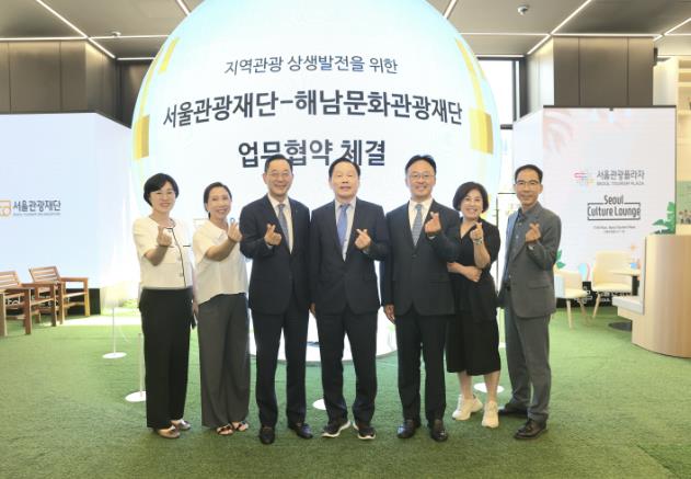 지난 28일 서울관광재단 회의실에서 열린 협약식에는 해남문화관광재단 이사장인 명현관 해남군수를 비롯해 서울관광재단 길기연 대표이사, 해남문화관광재단 구자형 대표이사와 양측 재단 관계자들이 참석했다.