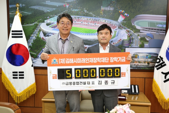 ▲ 김해시 ㈜금풍종합건설, 장학재단에 5백만원 기탁 |