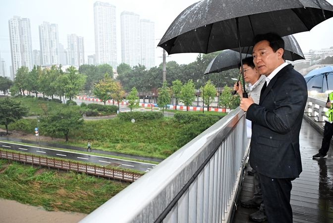 [뉴스서울] 오세훈 서울시장이 서울 동북·서북·서남권에 호우경보가 발령된 13일 저녁 홍수주의보가 발령된 ‘중랑천’을 찾아 대응 상황을 긴급 점검했다.