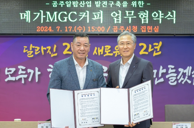 [뉴스서울] 공주시가 국내 3천여개 매장을 운영하고 있는 ㈜엔하우스 메가MGC커피와 ‘공주알밤’을 활용한 신제품을 출시하기로 협약을 체결했다.