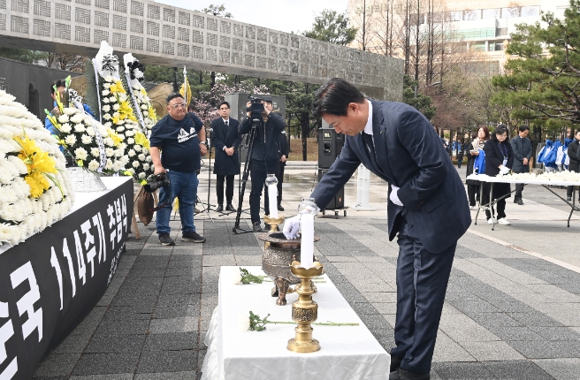 ▲ 조용익 부천시장이 안중근 의사 순국 114주기 추념식에서 분향하고 있다. |