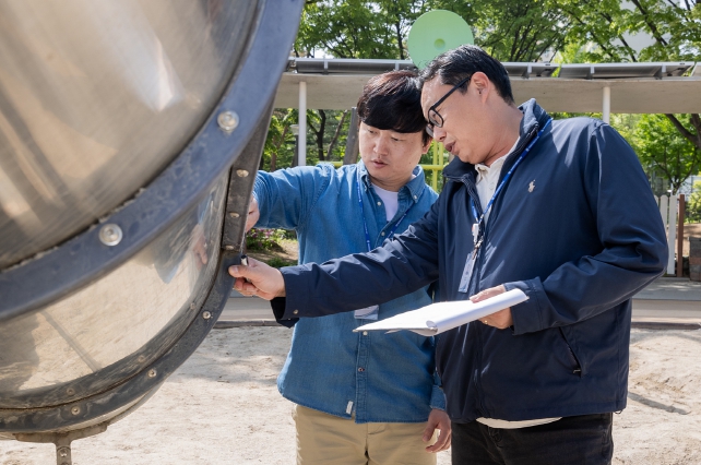 ▲ 양천구, 관내 어린이 놀이시설 전수 점검중인 점검반원들 |