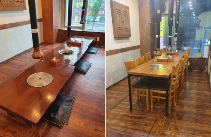 지원 내용은 ▲ 좌식테이블에서 입식 테이블로의 교체 비용 ▲ 주방 환기 시설 교체·청소비용 ▲ 키오스크 설치 비용이며, 업소별로 시설개선에 대한 비용을 최대 100만 원까지 지원하고 사업비의 20%는 자부담으로 운용된다.