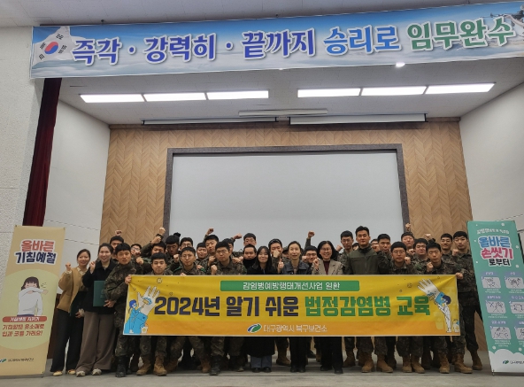 [뉴스서울] 대구광역시 북구보건소 주관, 2024년 감염병 예방 행태개선 사업의 일환으로 추진된 관내 군부대 소속 장병 대상의'알기 쉬운 법정감염병'교육이 성황리에 마무리됐다.