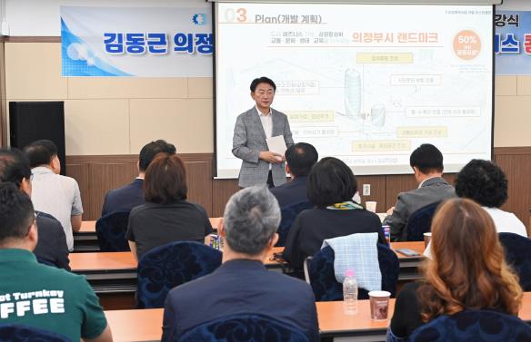 ▲ 김동근 시장이 9월 3일 경기북부상공회의소의 CEO아카데미 2학기 개강식에서 첫 강의를 하고 있다. |