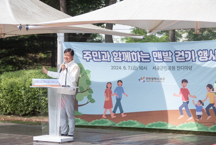 [뉴스서울] 인천 서구는 지난 7일 공원 내 맨발 걷기 산책로 조성사업 완공에 따른 ‘주민과 함께하는 맨발 걷기 행사’를 개최했다고 밝혔다. 이날 강범석 서구청장을 비롯해 지역 국회의원, 시·구의회 의원, 지역 주민 등 200여 명이 참석하여 맨발 걷기 산책로 조성사업의 준공을 축하했다.