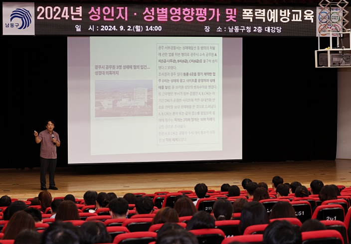 [뉴스서울] 인천시 남동구는 양성평등 주간을 맞아 최근 구청 대강당에서 구 산하 전 직원을 대상으로 ‘2024년 성인지 및 폭력 예방 교육’을 실시했다고 3일 밝혔다.