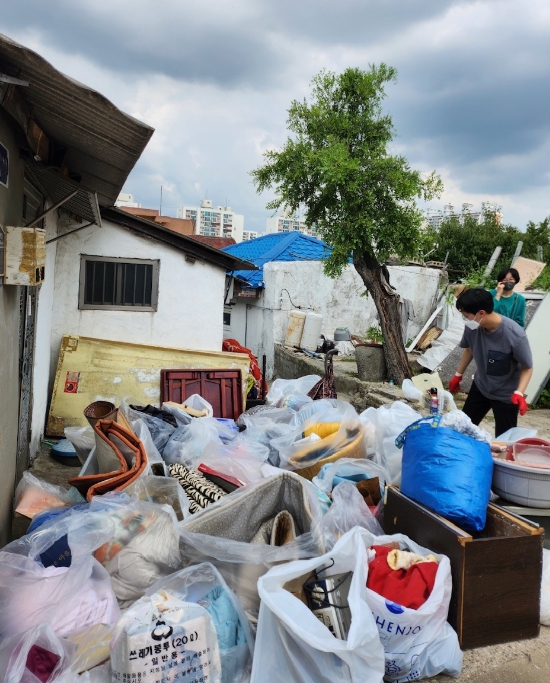 지원이 필요한 가구는 냄새나는 물건들이 집안 곳곳에 쌓여 있고 쓰레기와 유통기한이 지난 음식들이 뒤섞여 악취가 나는 등 비 위생적인 환경에 노출되어 있는 사례관리 대상 가구이다.