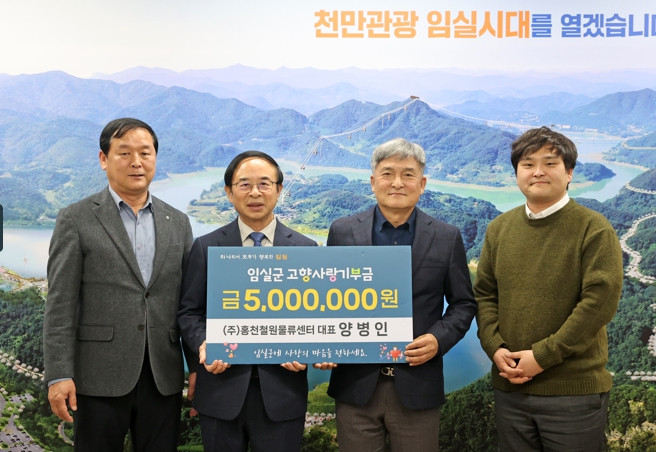 [뉴스서울] 임실군이 지난 12일 ㈜홍천철원물류센터 양병인 대표가 임실을 직접 방문하여 고향사랑기부금 최고 금액인 5백만원을 기탁했다고 밝혔다.