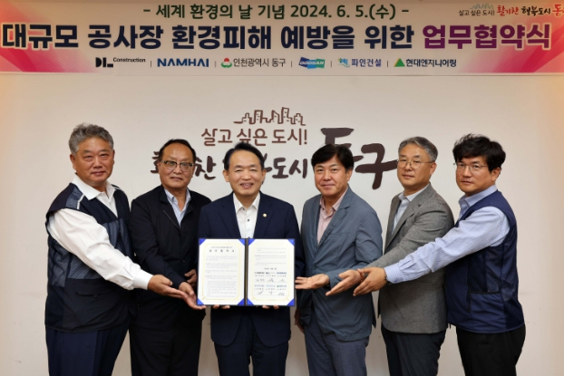 [뉴스서울] 인천 동구는 6월 5일 ‘세계 환경의 날’을 맞아 관내 대규모 공사를 진행하는 건설사들과 함께 소음·진동 및 비산먼지 예방을 위한 업무협약식을 개최하였다고 밝혔다.