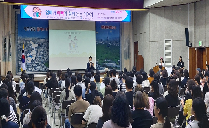 [뉴스서울] 대구 달서구가 3일 구청 대강당에서 영유아의 건전한 성정과 올바른 부모상 정립 및 행복한 양육방법을 안내하는'2024년 부모교육'의 2번째 강연을 실시했다.