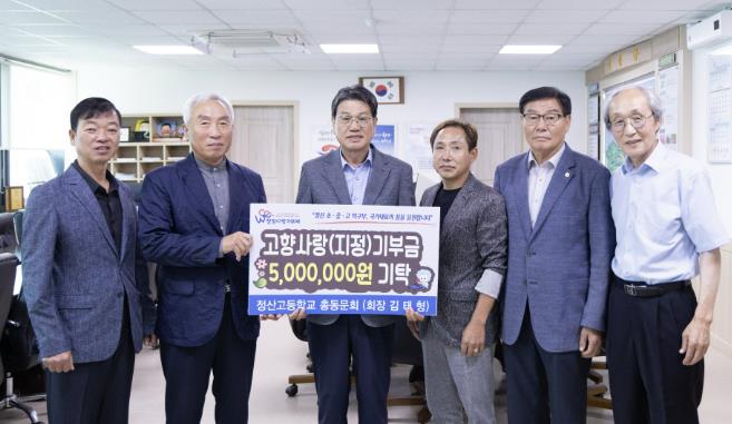 한편, 정산고 총동문회는 지난해에 집중호우 피해를 입은 모교 학생들에게 3백만원의 장학금을 지원한 바 있어 남다른 모교사랑을 실천하고 있다.