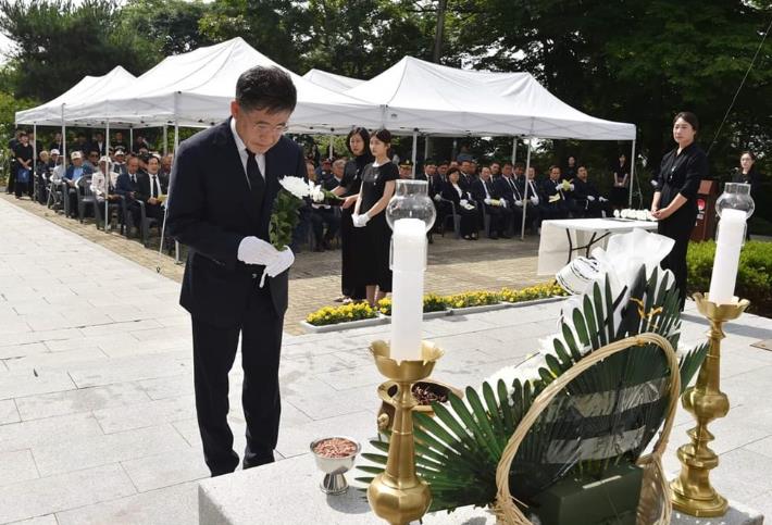 정성주 김제시장은 추념사를 통해 “오늘날 우리가 누리고 있는 자유와 민주주의 평화 번영은 순국선열과 호국영령들의 숭고한 희생이 있었기에 가능했다”면서 “순국선열 뜻을 받들어, 지역발전과 국가유공자 및 보훈가족의 예우에 최선을 다하겠다”라고 하였다.
