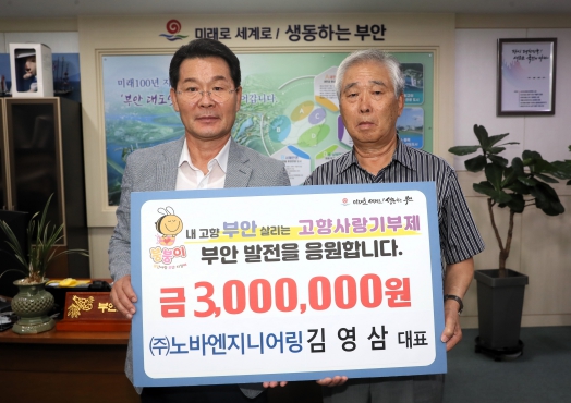 [뉴스서울] 부안군은 지난 2일 하서면 출신 노바엔지니어링 주식회사 김영삼 대표가 부안군에 2년 연속 고향사랑기부금을 기탁 했다고 밝혔다.