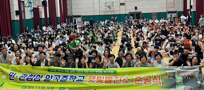 [뉴스서울] 광주교육시민협치진흥원은 9일 일곡중학교에서 김진구 시민협치진흥원장, 일곡중학교 김주신 교장, 일곡햇빛발전협동조합 최미옥 이사장, 지역주민, 학생 등 500여 명이 참석한 가운데 ‘시민참여형 햇빛발전소’ 준공식을 개최했다.