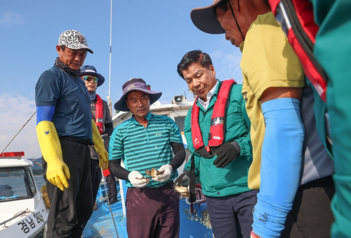 [뉴스서울] 이상근 고성군수는 9월 2일 자란만 굴 폐사 발생 현장을 방문하여 어업인들을 격려했다. 고성군 자란만에서는 지난 8월 초부터 발생한 산소 부족 물덩어리로 추정되는 이상조류로 인해 양식 중인 굴이 폐사하는 피해가 발생했다. 현장을 방문한 이상근 고성군수는 폐사한 양식굴을 직접 확인하고, 실의에 빠진 어업인들을 위로하며 애로사항을 청취하며 신속한 복구 및 지원에 대해 논의했다.