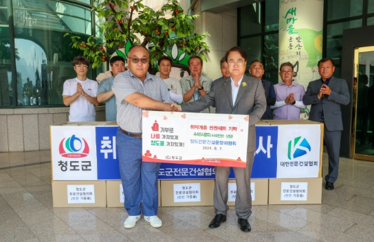 김하수 청도군수는 “무더운 폭염과 어려운 경기에도 이웃사랑에 힘써주시는 회원분들에게 진심으로 감사를 드리며”, “기후변화로 집중호우와 태풍 등 언제 닥칠지 모르는 위급한 상황에도 군민의 안전을 위해 건설인으로서의 사명감을 가지고 최선을 다해주시길 바란다.”고 말했다.