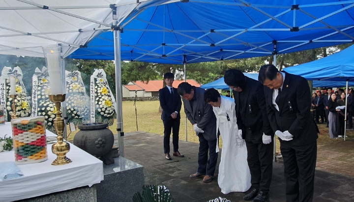 [뉴스서울] 서귀포시 성산읍에서는 제69회 현충일을 맞이하여 충혼묘지에서 국가유공자 및 유족, 보훈단체 회원 등 200여 명이 참석한 가운데 국화를 헌화하는 추념행사를 거행했다.