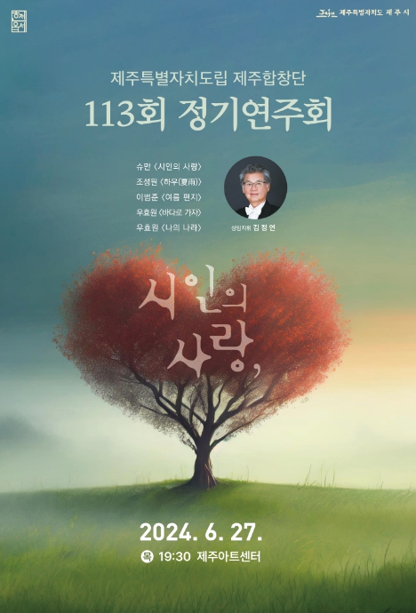 [뉴스서울] 제주시는 도립제주합창단이 오는 6월 27일 오후 7시 30분 제주아트센터에서 제113회 정기연주회 ‘시인의 사랑’을 개최한다고 밝혔다.