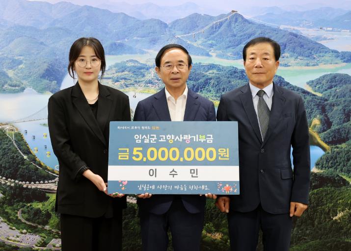 [뉴스서울] 임실군이 지난 9일 이경수 (전)임실새마을지회장의 자녀 이수민 씨가 고향사랑기부금 500만원을 기탁했다고 밝혔다.
