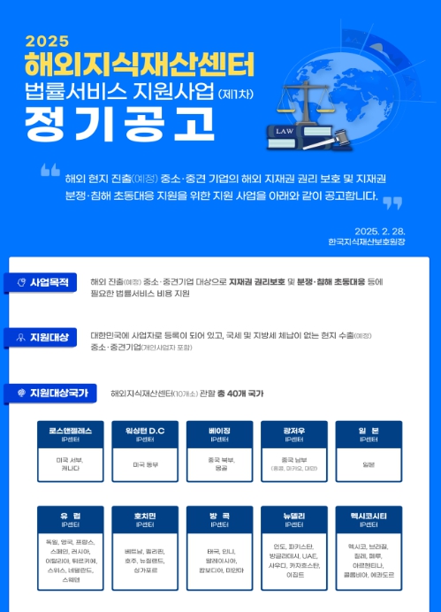 ▲ 해외지식재산센터 법률서비스 지원사업 공고문 |