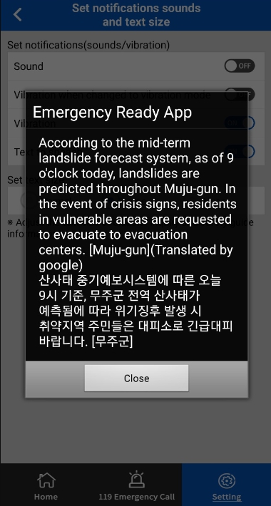 외국어로 번역된 재난문자는 ‘Emergency Ready App’을 통해 받을 수 있다.