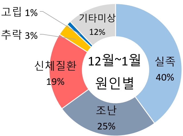 ▲ 연말연시 기간에 따른 원인별 등산사고 |