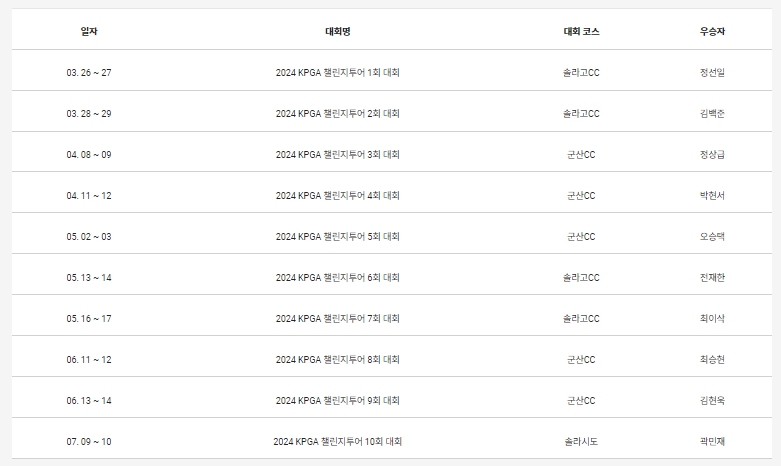 [뉴스서울] 2024 시즌 KPGA 투어 챌린지투어가 ‘10회 대회’를 기점으로 반환점을 돌았다. 올 시즌 KPGA 챌린지투어는 총 20개 대회가 진행된다.
