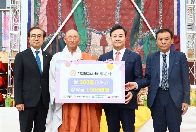 | ▲ 백운사, 부처님 오신 날 맞아 의왕시 청소년 장학금 1,000만원, 쌀 300포 기탁 |
