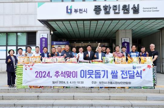 부천시전통시장상인연합회는 지역 취약계층의 어려움을 덜어주고자 지난 2012년부터 매해 추석 명절에 쌀 기부로 꾸준하게 나눔을 실천해 오고 있다.