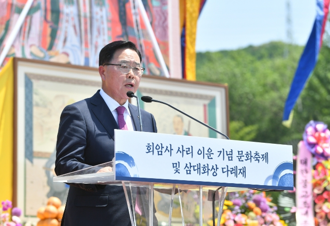 강수현 양주시장은 축사를 통해 “100년 만에 환지본처(還至本處)되는 3여래 2조사의 사리를 통해 우리시 대표 문화유산인 ‘양주 회암사지’의 역사·문화적 가치가 재조명되고, 유네스코 세계유산 등재 추진에 박차를 가할 수 있는 좋은 계기가 되기를 기대한다”고 밝혔다.