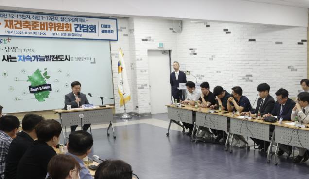 이번 간담회는 시가 재건축 정비계획 입안 제안을 준비과정에서 준비위원회가 겪는 어려움을 직접 듣고 행정적 지원 방안을 제시하는 자리였다. 간담회에는 하안주공 1~12단지, 철산주공 12~13단지, 철산KBS우성 아파트 15개 단지의 준비위원회 위원 40여 명이 참석했다.