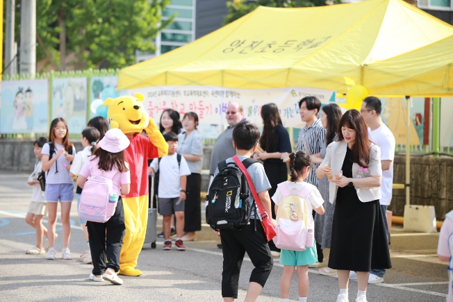 2024년 즐거운 학교 만들기 ‘룰루랄라, 행복한 학교 가는길’은 등굣길에 선생님들이 학생들과 손바닥을 마주치며 인사를 나누고, 아이들이 좋아하는 간식을 선물로 준다.