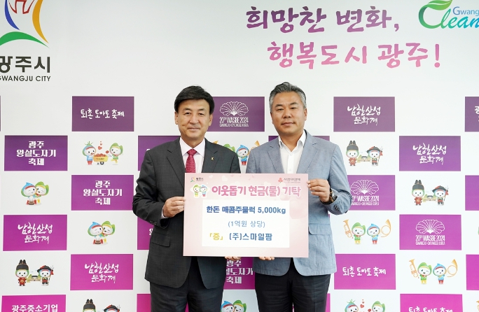 [뉴스서울] 농업회사법인(주)스마일팜 김천석 대표는 지난 27일 어려운 이웃을 위해 사용해 달라며 광주시에 국내산 매콤삼겹주물럭 4천500㎏, 국내산 매콤목심 주물럭 500㎏(1억원 상당)을 기탁했다.