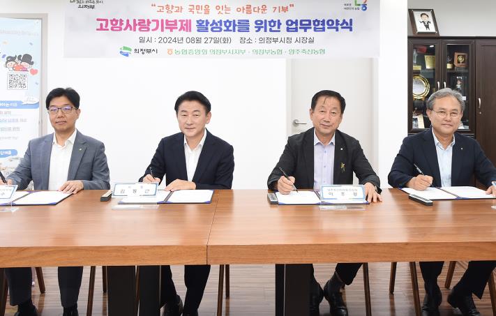 [뉴스서울] 의정부시는 8월 27일 농협중앙회 의정부시지부, 의정부농업협동조합, 양주축산업협동조합과 고향사랑기부제 활성화를 위한 업무협약을 체결했다.