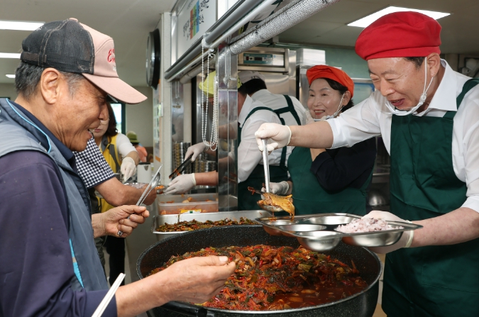 이어 가평군노인복지회관을 찾아 경로식당 배식봉사와 오찬을 함께 하면서 어르신들과 현장소통을 늘리는 시간을 가졌다. 서 군수는 “가평군은 올해 4월 기준으로 65세 이상 고령인구가 30%로 매우 높다”며 “어르신들의 복지증진을 위해 2026년 완공을 목표로 지하 1층, 지상 4층 규모의 노인복지회관을 신축중에 있다”고 밝혔다.