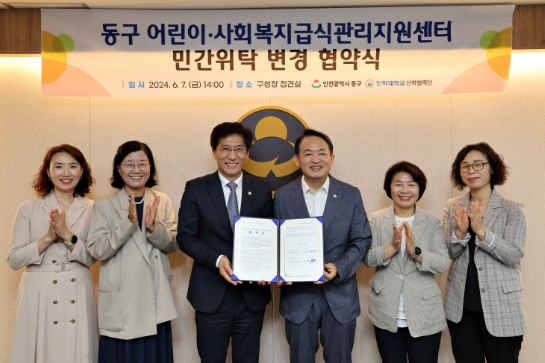 [뉴스서울] 인천 동구는 지난 7일 인하대학교 산학협력단과 ‘어린이·사회복지급식관리지원센터 민간위탁 변경 협약’을 체결했다고 밝혔다.