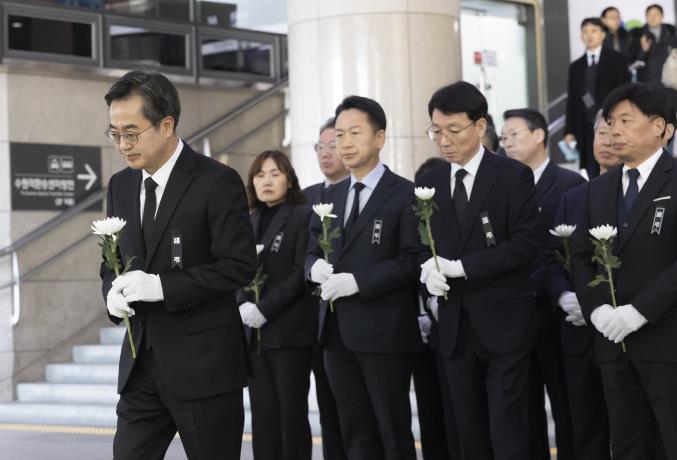 [뉴스서울] 김동연 경기도지사가 31일 김성중 행정1부지사, 고영인 경제부지사, 조선호 소방재난본부장, 주요 실국장들과 수원역에 마련된 제주항공 여객기 사고 희생자 합동분향소를 방문해 희생자들을 추도했다.