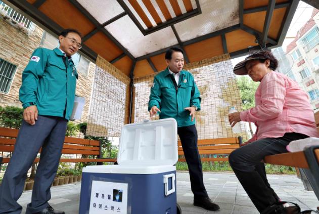 김찬진 청장은 본격적인 운영 시작에 앞서 현장 사전점검을 실시하여 운영물품 설치(냉장고, 아이스박스, 선풍기)와 관리 인력 배치 등 무더위쉼터 준비 상황을 확인하였다.
